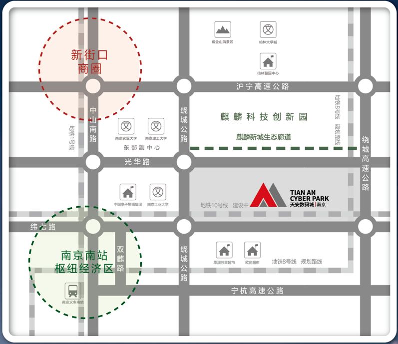南京天安数码城位于南京市主城东南的白下高新技术产业园区,是南京产业发展的中心地带。该区域总建筑面积大约33万平方米,规划有8座创新科技产业大厦和8座生态科技总部楼,目标是建设一个产业、城市、文化和生活完美融合的智慧新城。自项目启动以来,因其高标准的规划而备受关注。