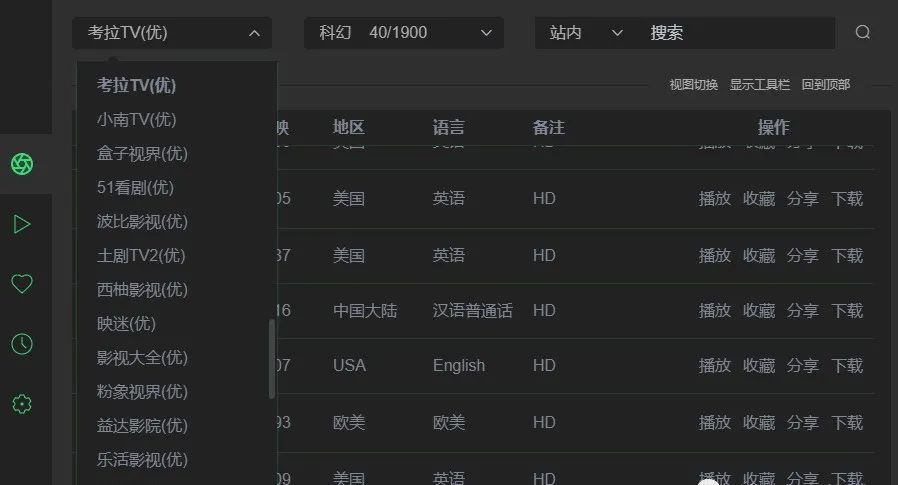 这款软件的好处在于兼容性强,无论是Windows、Linux还是MacOS系统,都能顺畅运行。众多程序员朋友在系统间切换时,都喜欢用它来追剧。不过,它自带的站点资源一般,我之前就自行添加了站点,依照之前分享的方法操作后,资源数量立刻增多。