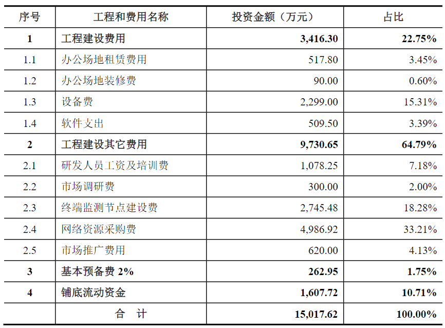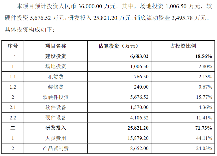 与传统建筑项目相比,在软件及信息技术服务企业的产品升级和产业项目投资中,研发资金的投入显得格外关键。监管部门提倡科创板企业将资金优先用于支撑核心业务及新技术的研发,因此,不少科创板企业的产品升级和产业项目,研发资金所占比重已经超过了半数。以思瑞浦微电子科技(苏州)股份有限公司为例,这家公司在进行项目投资时,其费用分配是按照各个功能模块来决定的。
