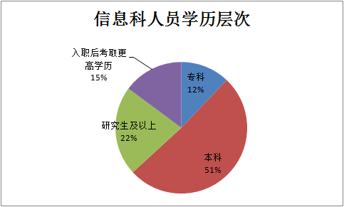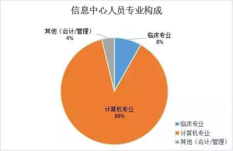 查看“信息中心人员专业构成”图表,我们可以看到,医院不仅增聘了临床人员来补充IT人员在医疗知识方面的不足,而且统计、会计、管理等相关专业人员的比例也在逐渐增加。这种人员结构的变化,旨在满足医院业务发展的需求,进而使信息科人员的知识体系更加全面和多样化。