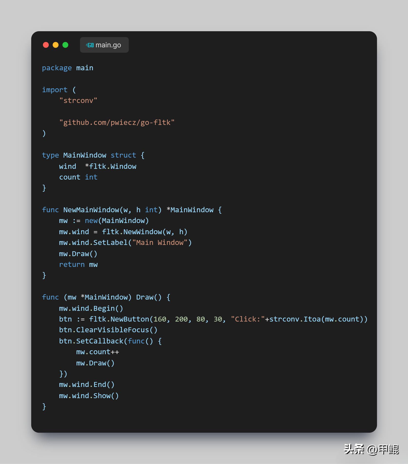 Go-Fltk搭建的界面看起来略显过时,这主要是因为fltk本身就是一个相对传统的工具集合。尽管如此,它还是具备fltk.()这一功能,让用户能够选择他们喜欢的复古风格。虽然界面不够时尚,但用它来制作轻巧的小程序还是可以的。若不满足特定需求,用户还可以自行调整色彩、边框等细节。由于fltk本身不具备状态管理的能力,我们得把fltk纳入一个结构体中,并增设必需的变量。此外,我们把界面绘制代码整合到绘制函数里。在事件处理环节,我们调整状态,然后重新渲染界面,通过这种方式来执行状态管理。
