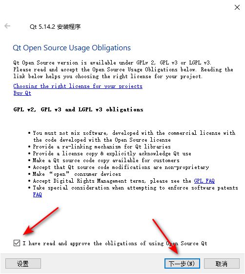 安装步骤有几个需要注意的地方。首先,要勾选左下角的选项,表示你已经知晓并同意了使用开源Qt的相应责任。接着,点击“下一步”按钮。默认的安装路径是C盘,但你可以根据自己的需求修改,比如选择E盘。这个过程要考虑你的磁盘空间大小以及使用习惯。