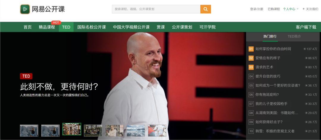 中国大学MOOC由网易推出。它汇聚了TED、国内外名校公开课、可汗学院等优质内容。国外视频配有翻译好的字幕,即便英语不好也能学习。