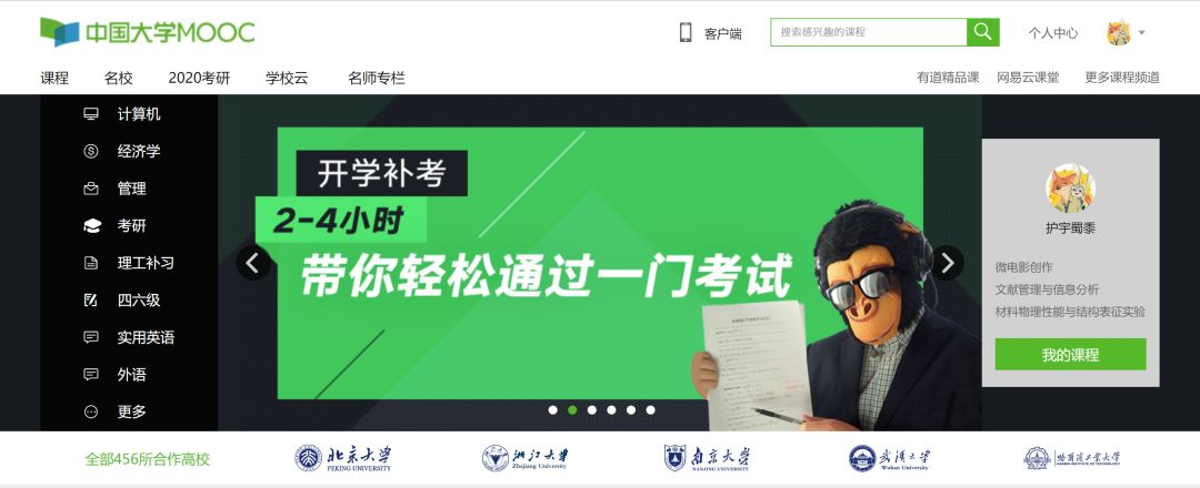 课程内容有6大板块。包括综合素养、考研辅导等方面。课程来自全国各大名校。这里成了大学生学习提升的重要地方。很多学生靠课程成绩有了进步。