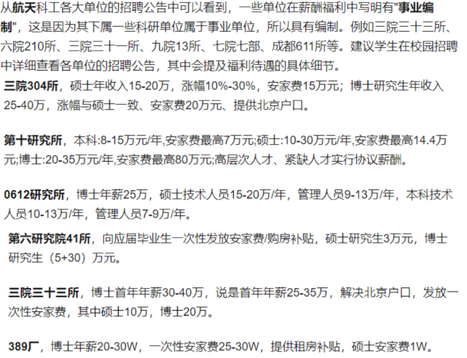 人们对于军工岗位的看法各不相同,各人从个人立场出发发表意见。有的人认为军工行业薪酬不高、工作强度大,而另一些人则觉得工作稳定、保障性强。有网友在南京的一家军工研究所分享了他们的待遇,引起了人们的羡慕。即便是在软件开发领域,这里的年薪也很可观,与市场上的待遇相比毫不逊色。