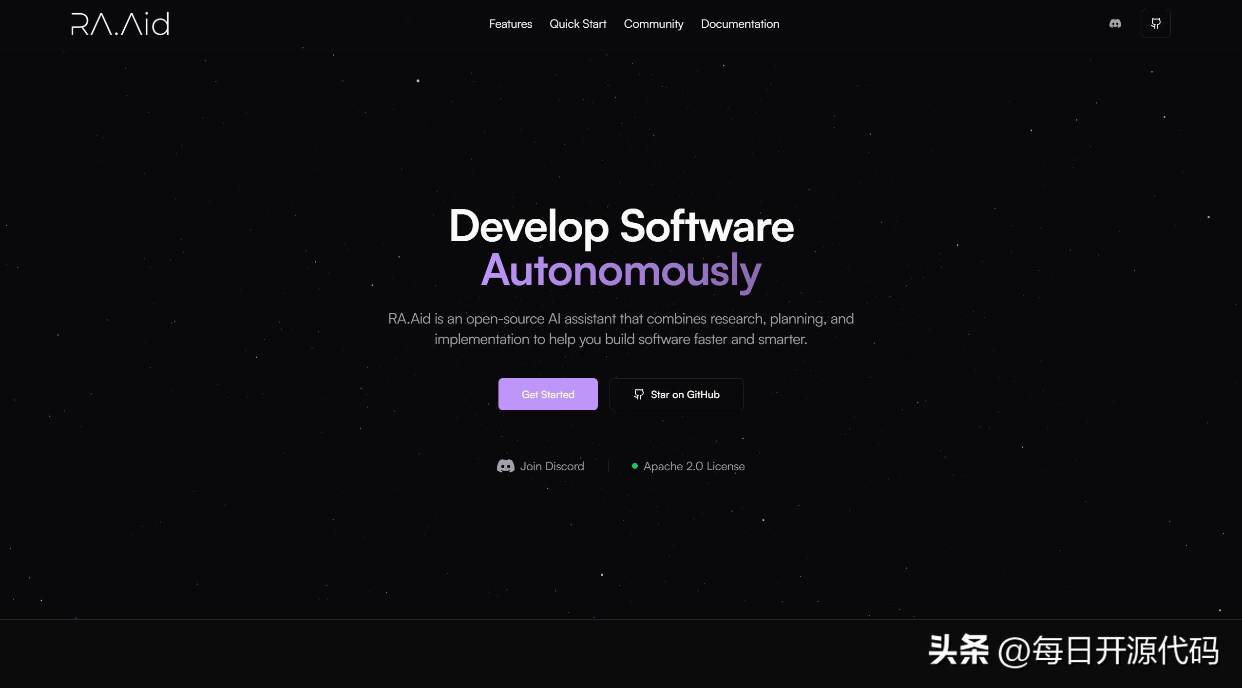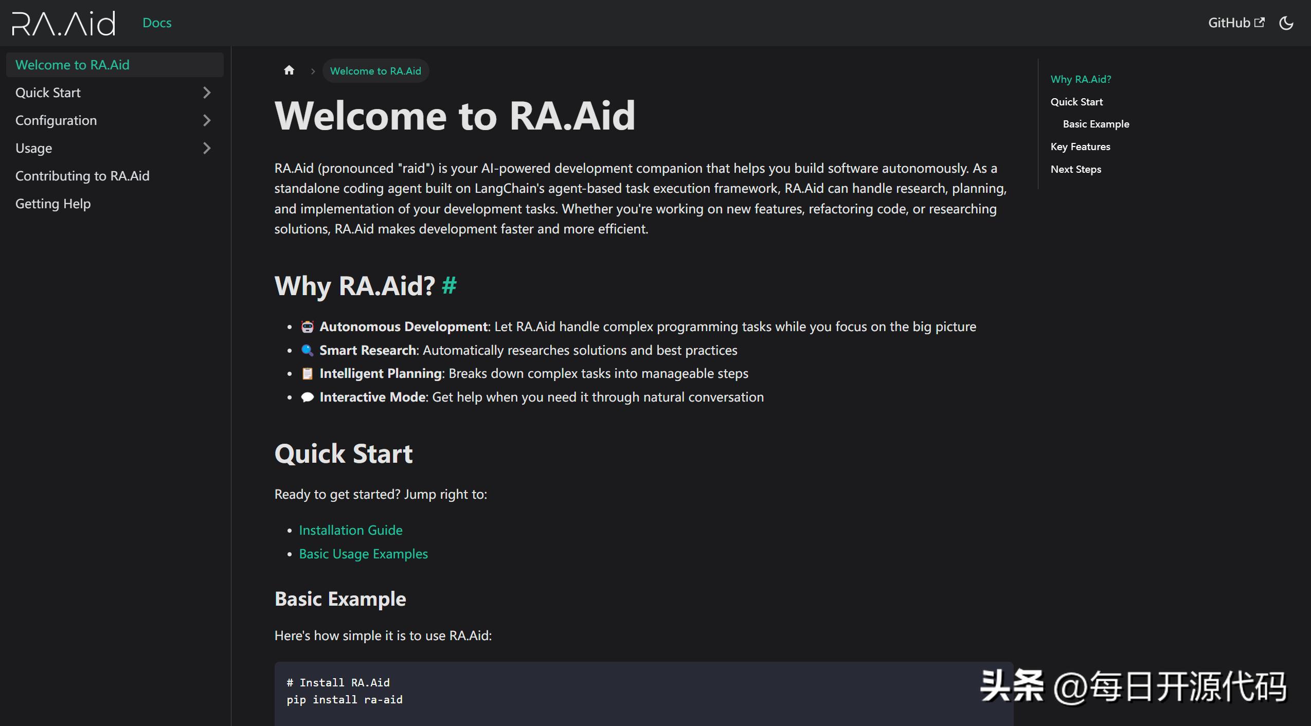 想要高效快捷地开展软件编程?RA.Aid这款开源的人工智能工具值得关注!它能够为开发者提供全方位的帮助,现在就让我们深入探究它的功能和特点。