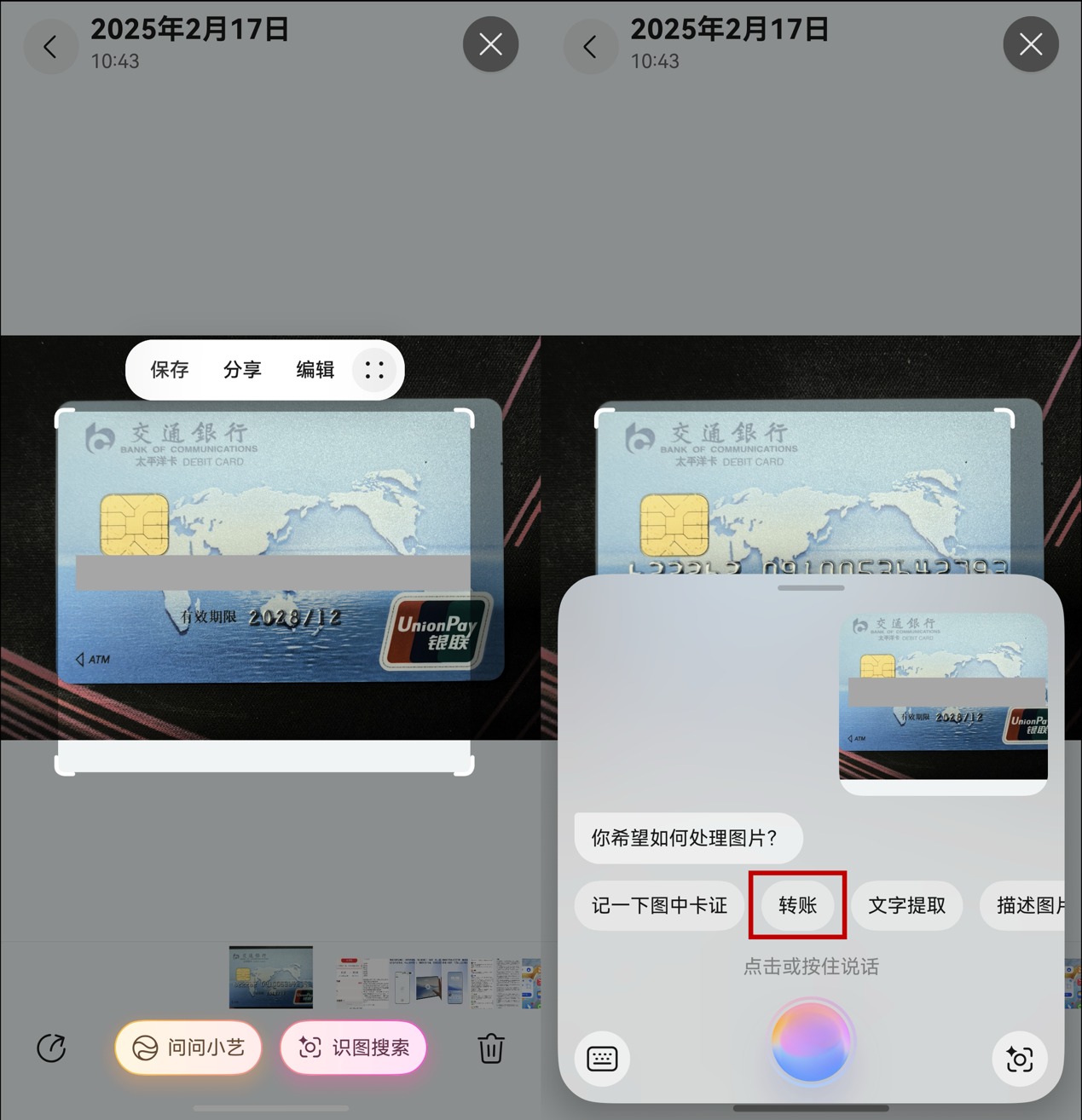 原生鸿蒙的意图框架,主要是通过多维系统感知、大模型 AI 能力来理解用户的显性意图与潜在意图匹配相应合适的服务的。咱举个例子说,用户用原生鸿蒙手机转账、还款的时候,就对着小艺说句话轻松搞定。像是鸿蒙原生版招商银行、华夏银行这些,就能通过小艺语音转账、圈选转账。指关节圈选照片里的银行卡或者有银行卡号的消息,马上就能唤起小艺,把钱转给对应的卡号了。掌上生活用小艺语音还能查账单,厉害