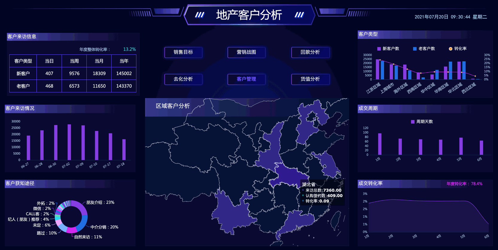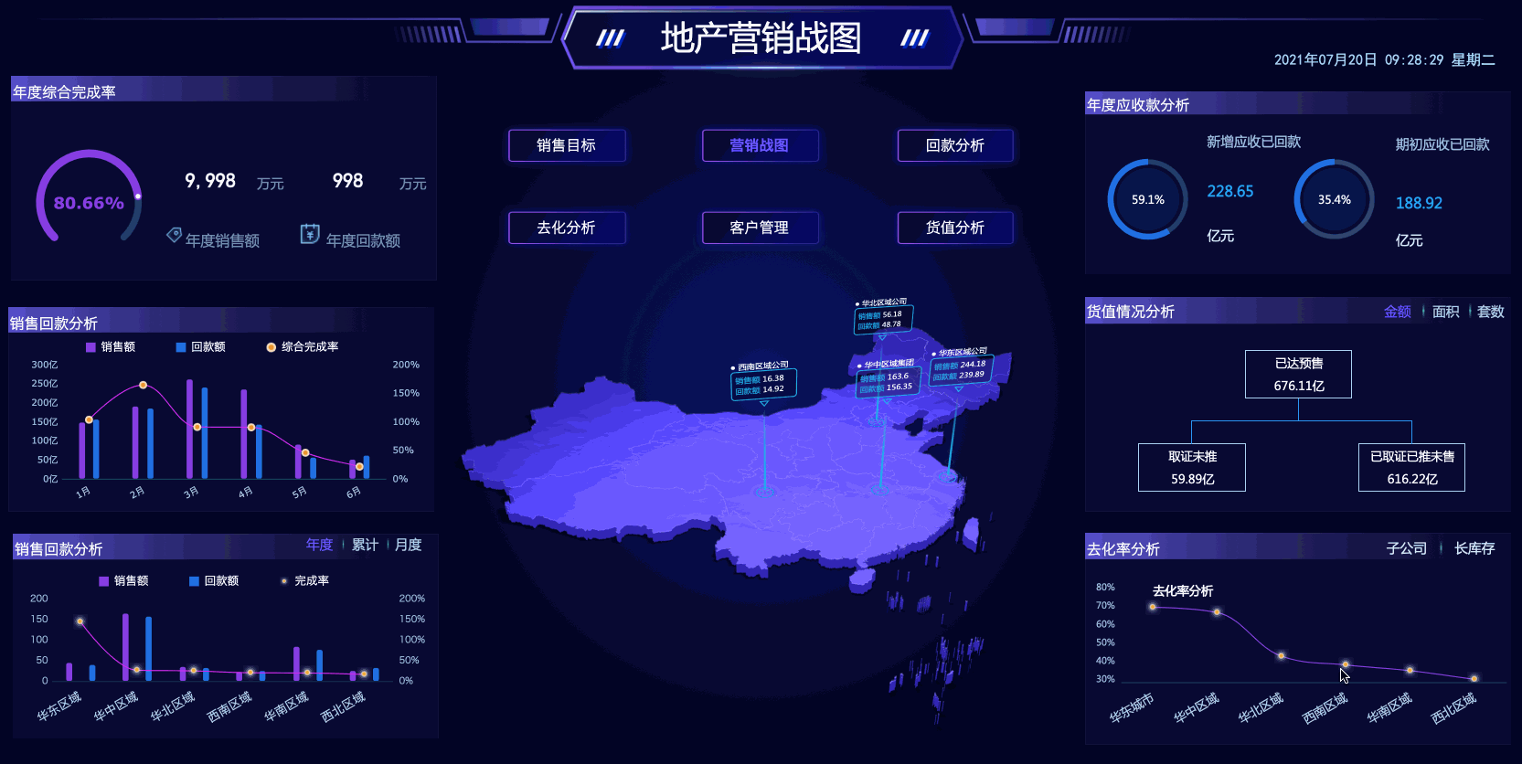 适用场景:一套地产营销战图系统,通过大屏的形式展示,让管理决策更高效!