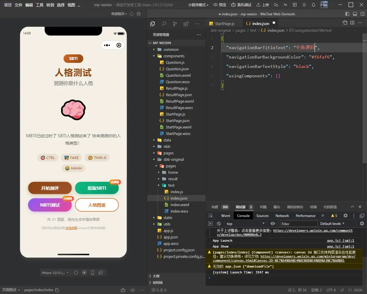 基于 uniapp 优化开发:SBTI 多类型测试小程序源码