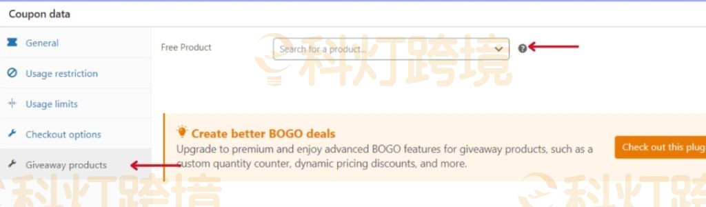 首先安装并激活 Advanced Coupons 插件以启用 BOGO 交易,转到 Marketing – 折扣码。在 Coupon data (优惠券数据) 部分下,查找 BOGO 优惠设置。