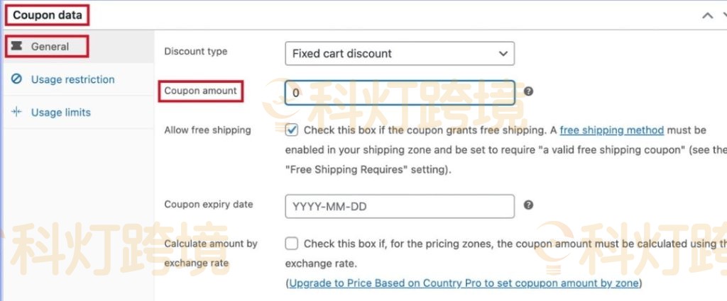 - 设置 Coupon amount (优惠券金额),决定固定值或百分比折扣。