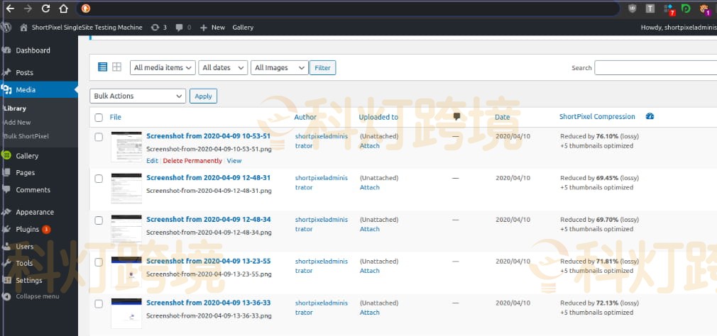 为了检查ShortPixel插件是否优化了图像,需要导航到“媒体”-“库”,选择“列表视图”,应该会看到一个显示优化状态(ShortPixel Compression)的列。