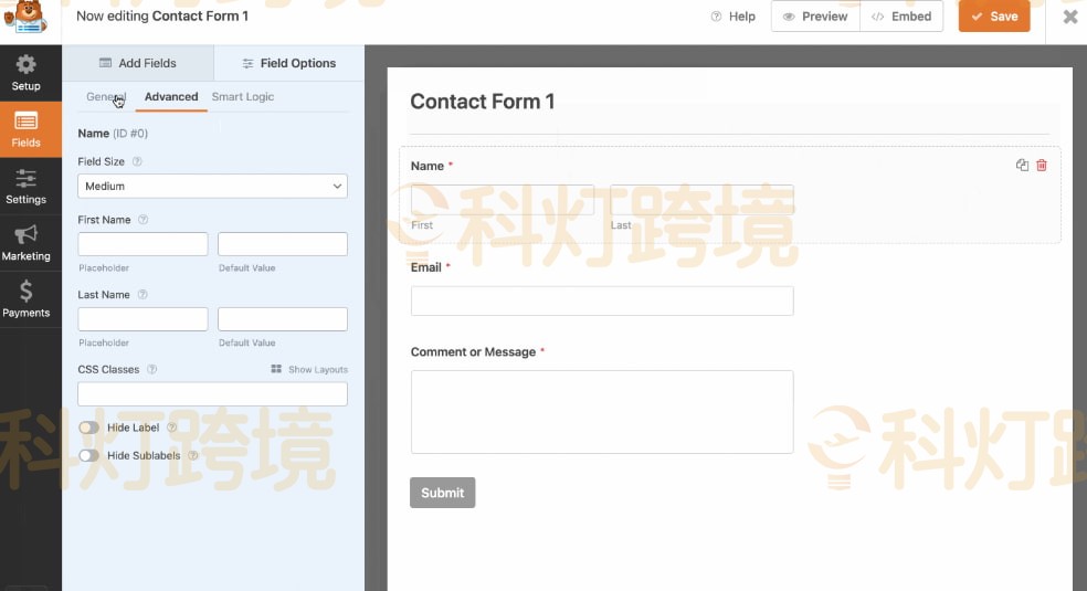 在Form CSS Class中填写一个类别名称,建议添加wpf-作为前缀,这有助于避免自定义CSS代码与网站上的WordPress主题或插件之间的冲突。