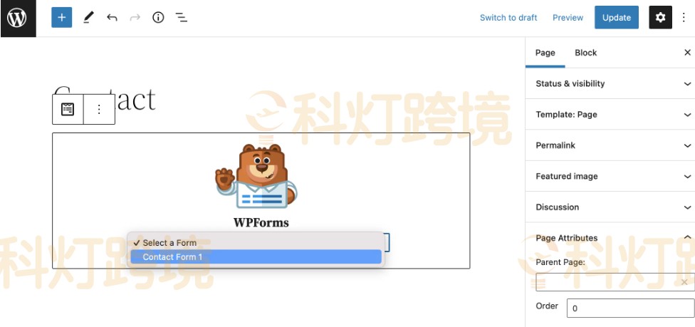 在这里可以创建和自定义表单,WPForms 的 Contact Form 激活后会立即将用户重定向到着陆页,它提供例如以下功能:
