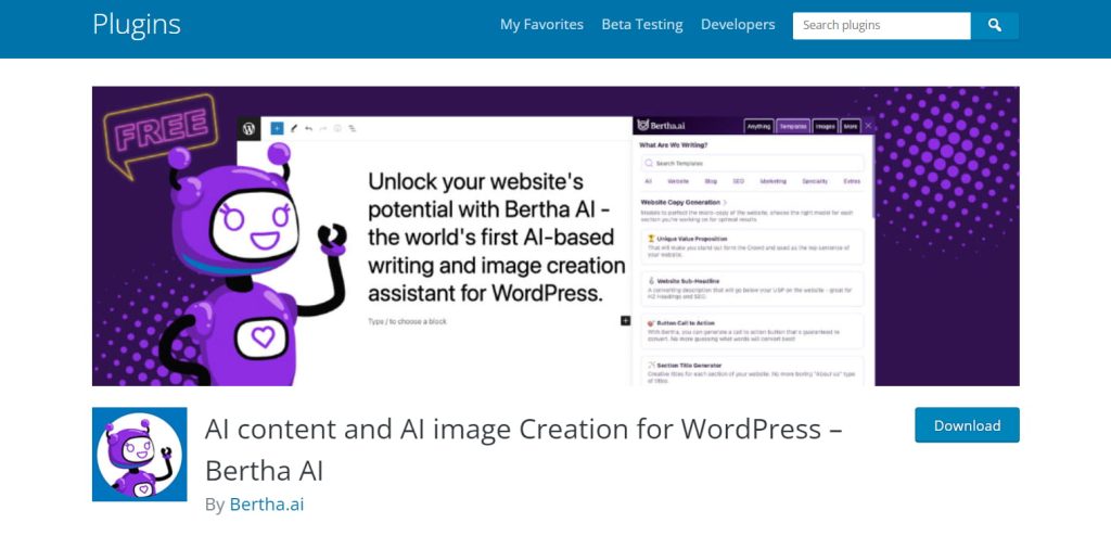 Bertha AI 通过自动创建富含长尾关键字和 SEO 标签的产品描述来简化电子商务运营。在内容创作领域,该WordPress插件擅长撰写引人注目的文章、博客文章和网站文案,以引起目标受众的共鸣并推动转化。从生成以受众为中心的网站文案到制作有说服力的营销内容,该插件允许用户吸引受众并有效地实现他们的营销目标。