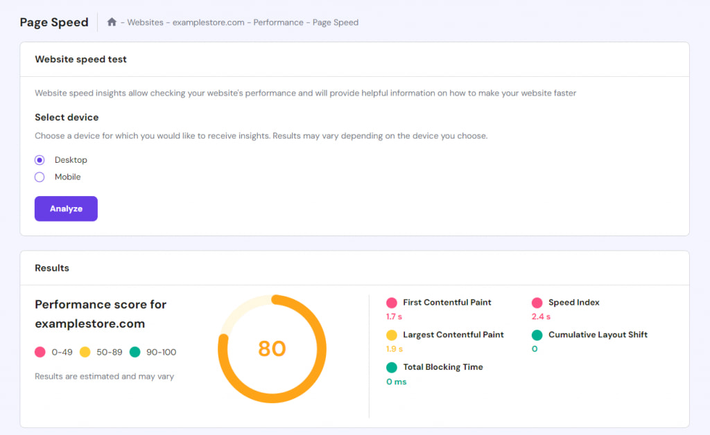 PageSpeed Insights由谷歌开发,可分析网站的移动和桌面版本。它根据核心网络生命值提供分数,是优化页面加载速度的重要工具,强调了用户体验的指标。这对积极的用户体验至关重要: