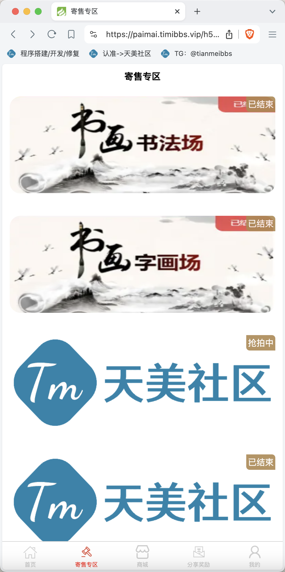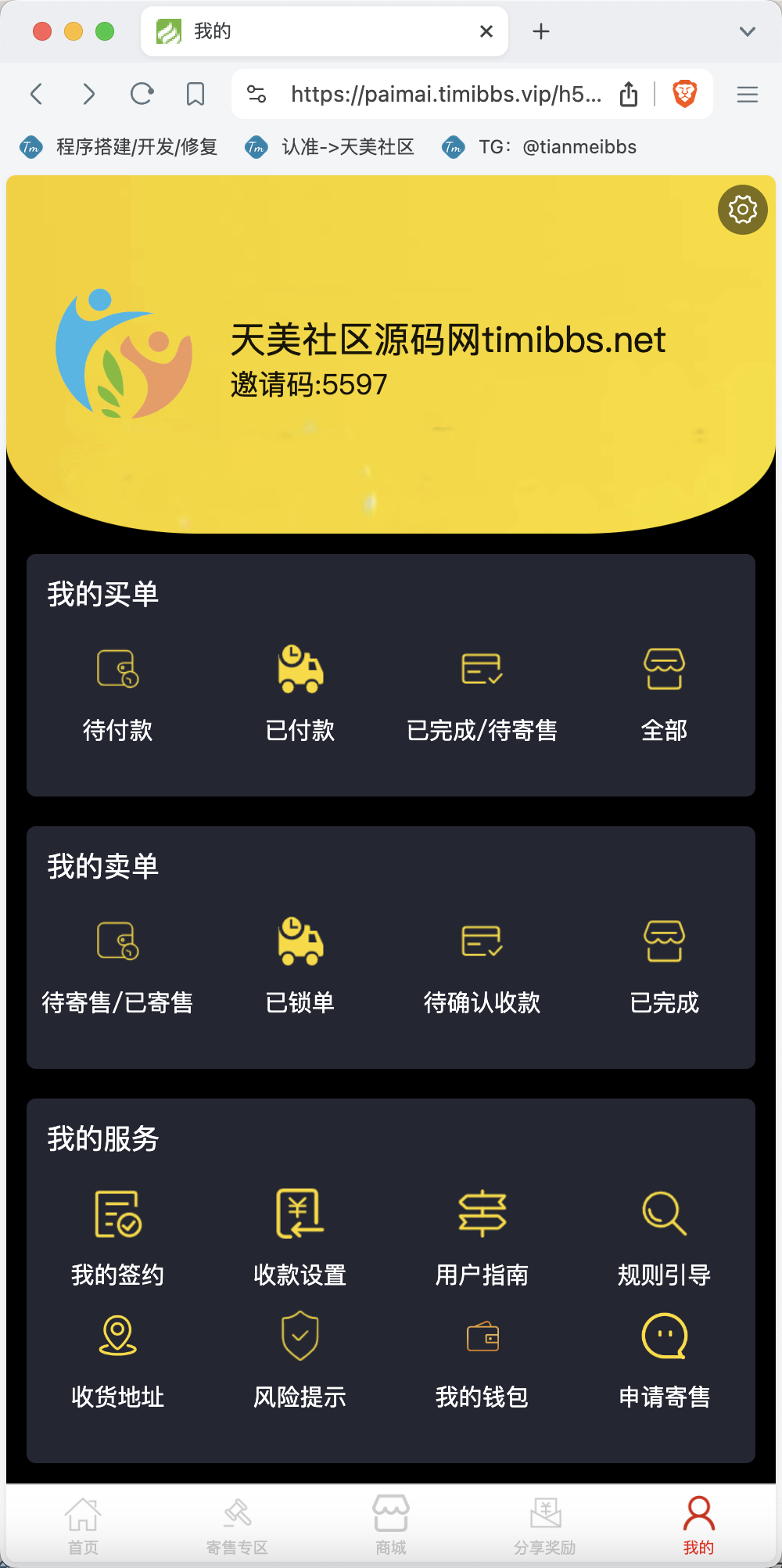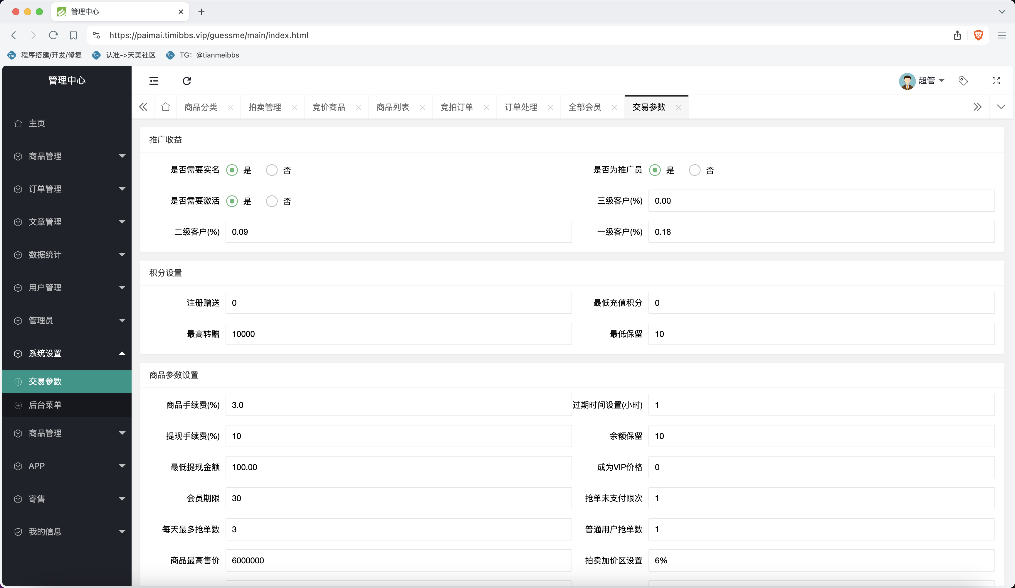 整套程序主要以拍卖挂售为主,然后就是积分商城,没有新奇的功能,测试中没有发现什么问题