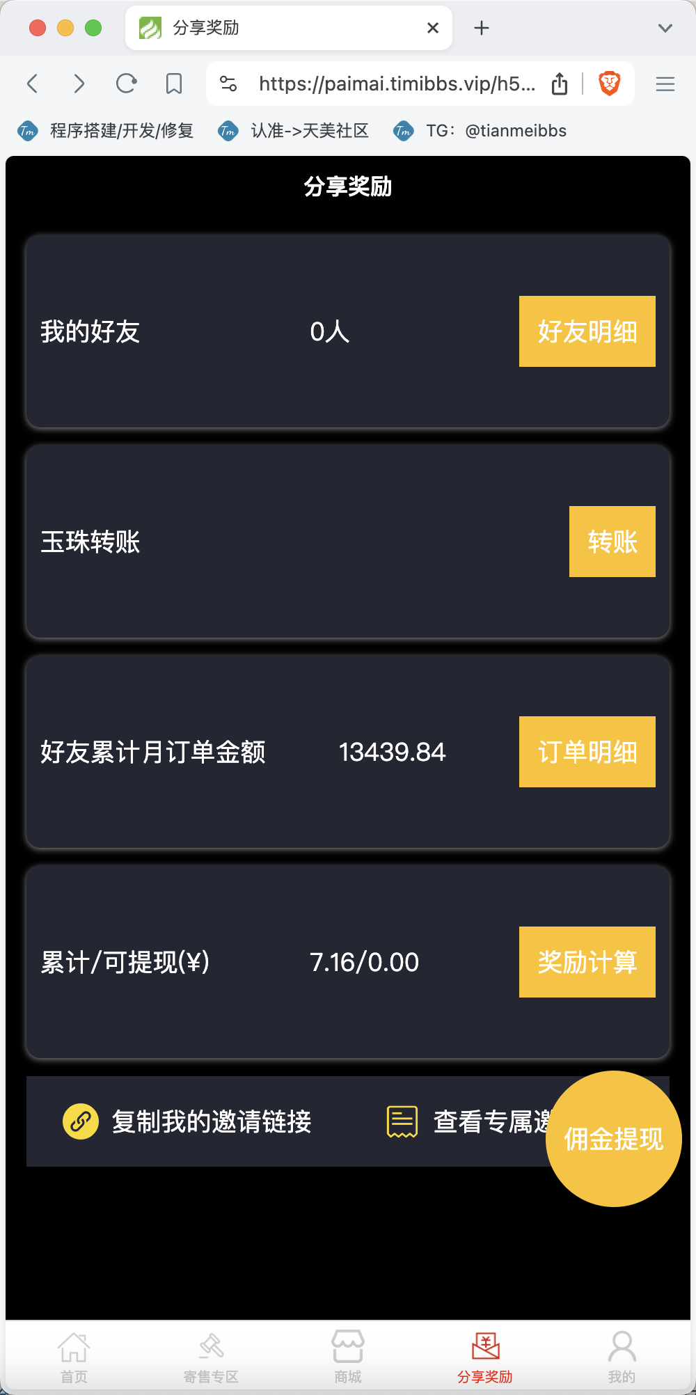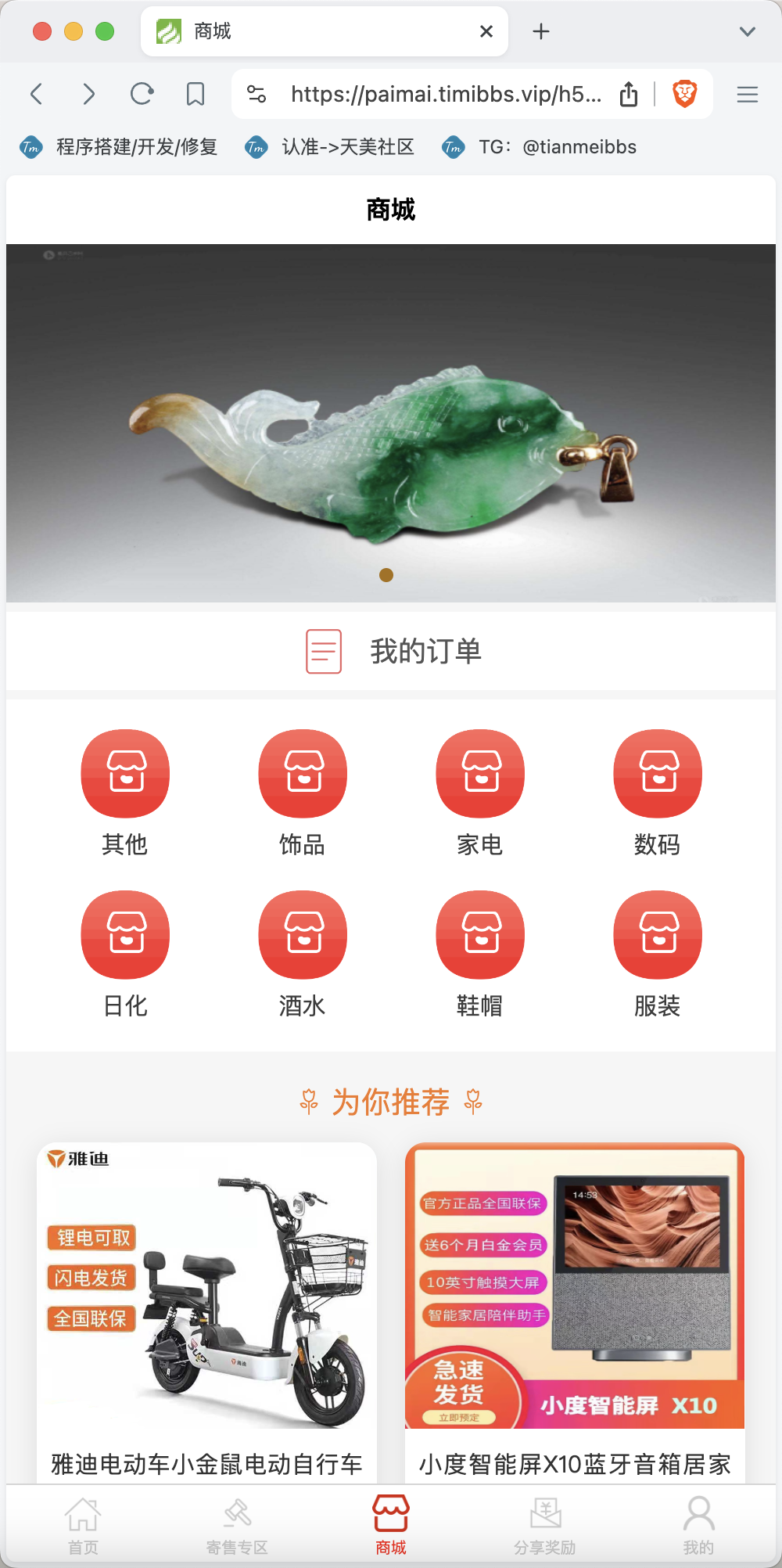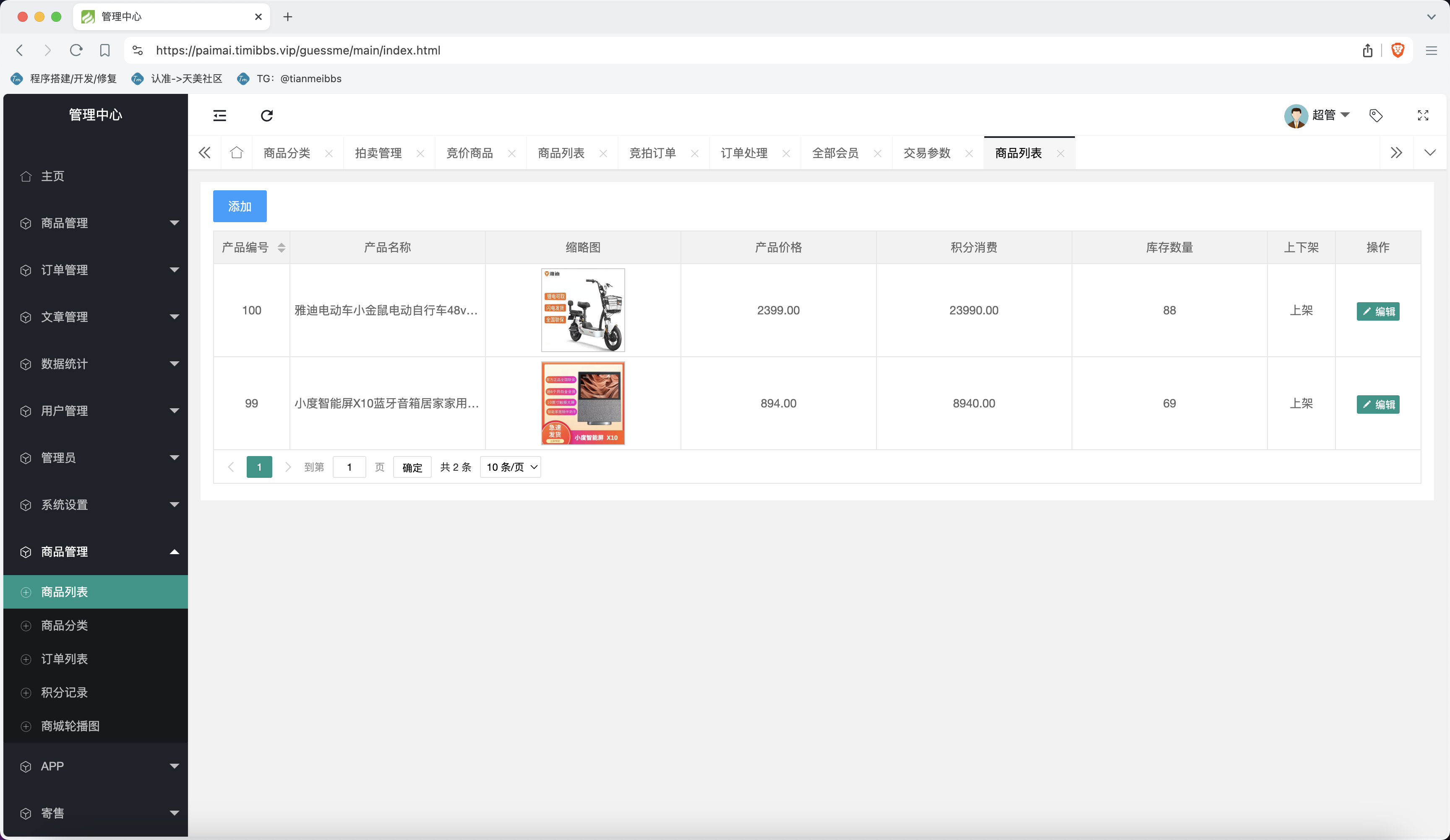 整套程序主要以拍卖挂售为主,然后就是积分商城,没有新奇的功能,测试中没有发现什么问题