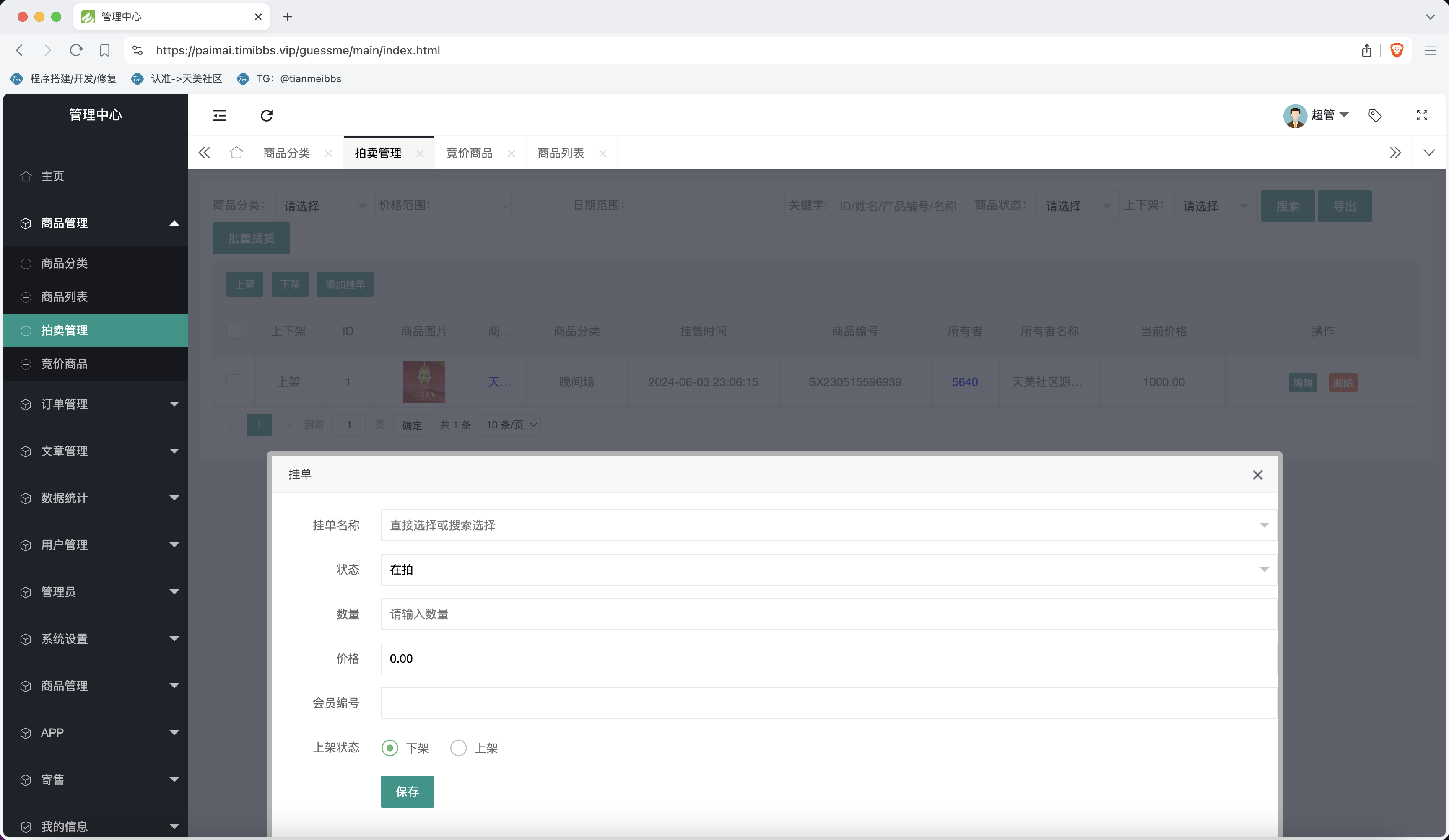 ①、后台可添加商品进行挂单