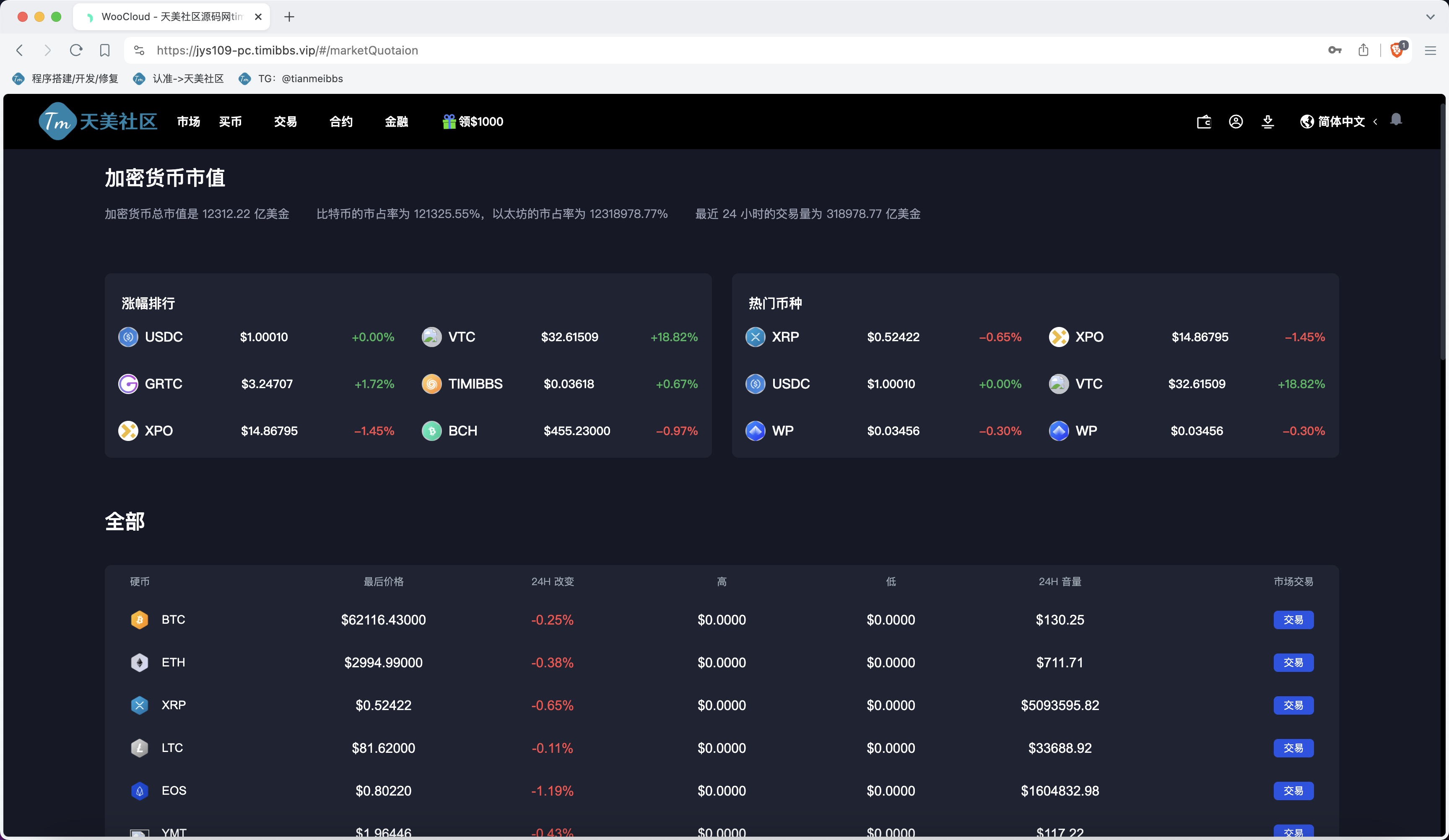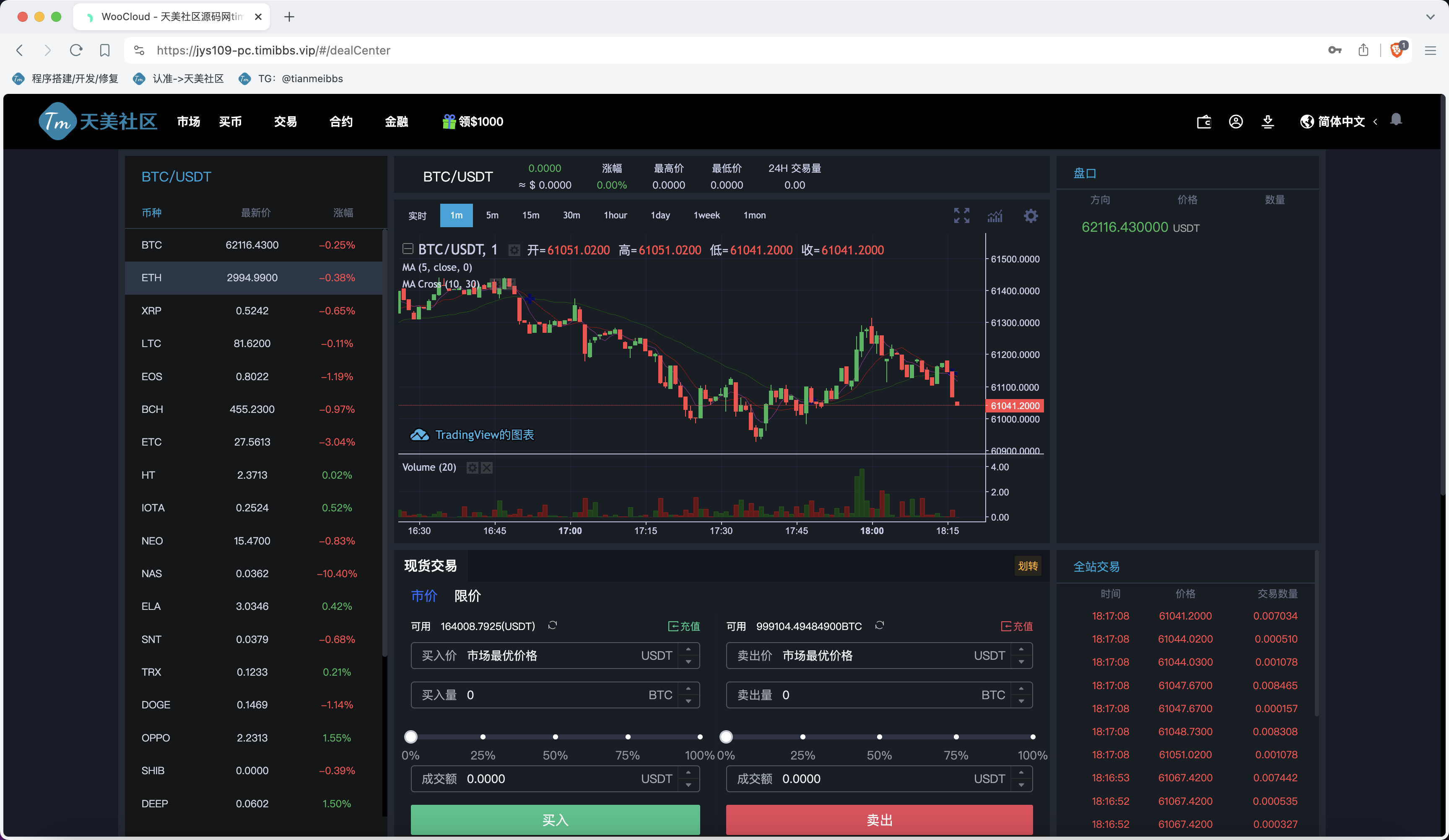 程序带搭建教程,一定要用海外服务器搭建,不然k线用不了,可以做前后端分离,后台登陆写了谷歌验证