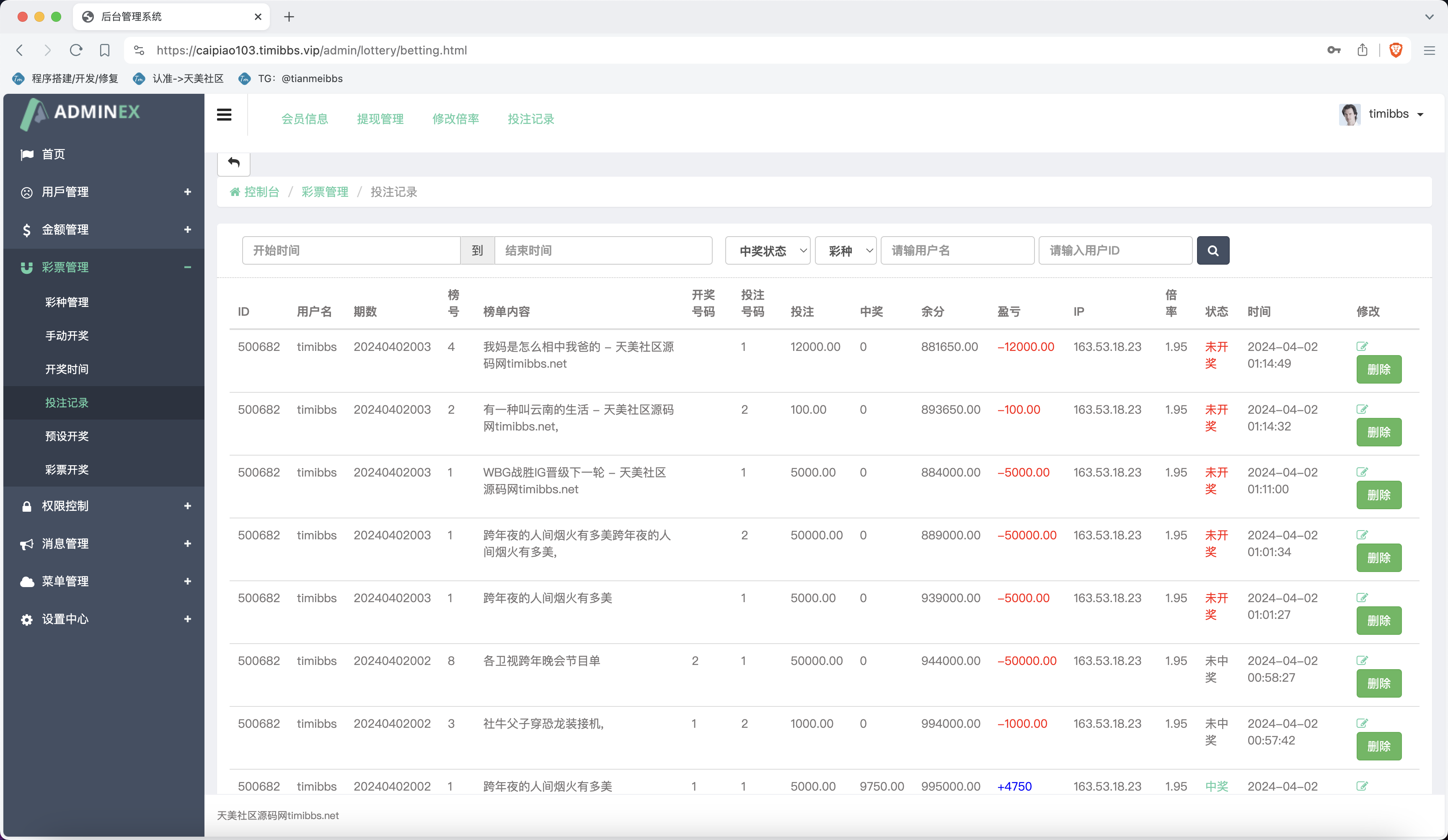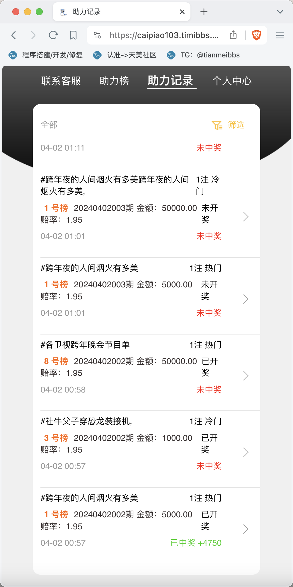 2.下注后,显示的都是未中奖,开奖结算应该是正常的;