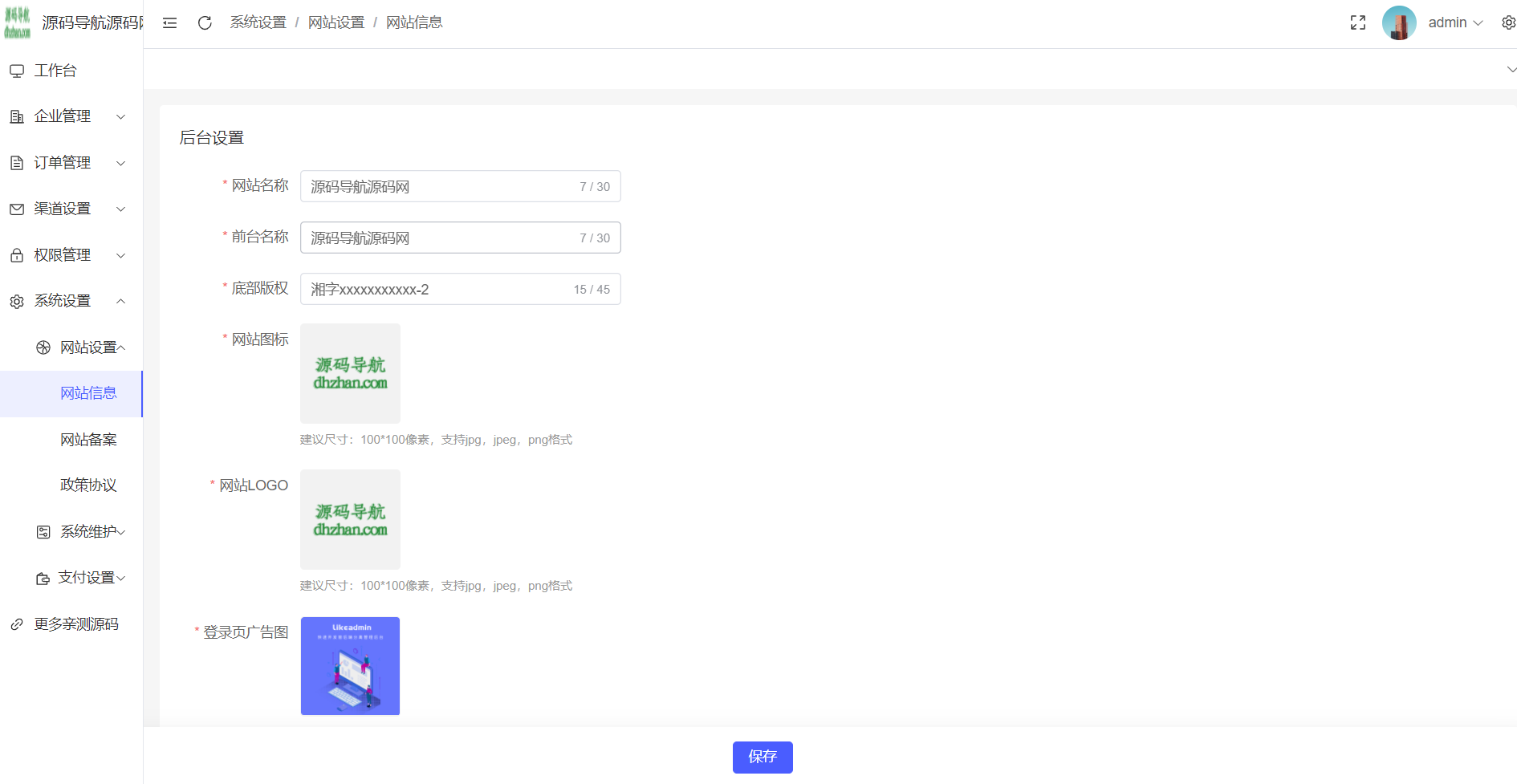 网站后台:域名/admin
