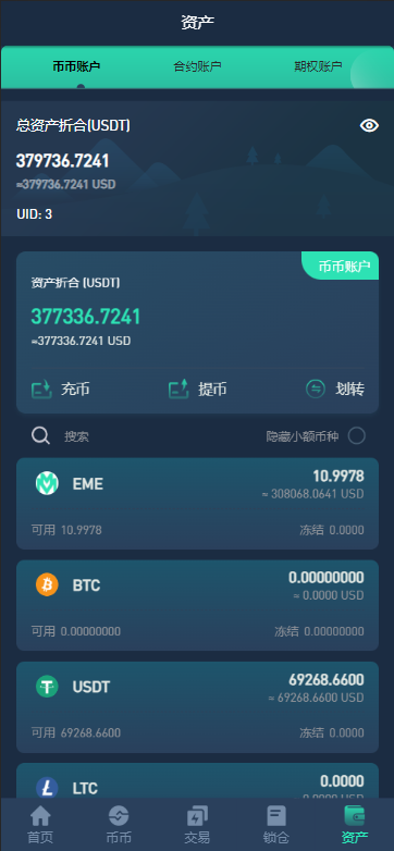 东西很完整,带USDT理财挖矿。UI看起来也很OK。具体功能自己看图吧。