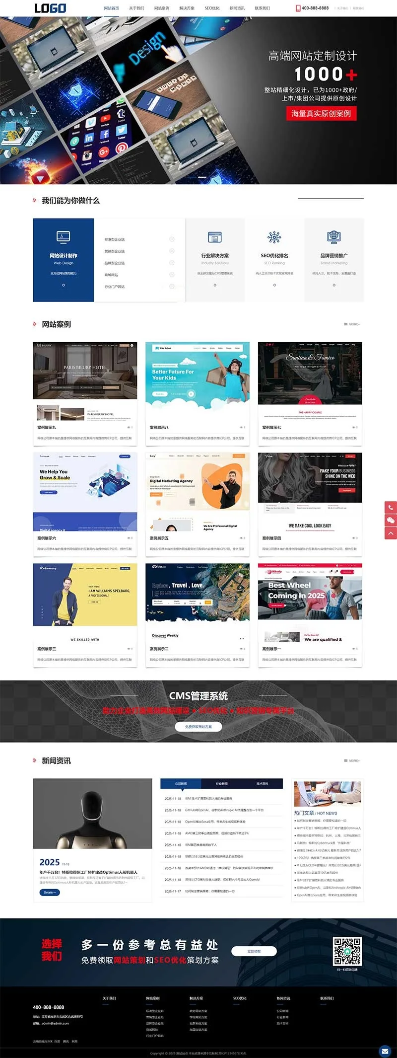 网站SEO友好,所有页面均都能完全自定义标题/关键词/描述,可后台修改网站LOGO,名称、联系信息、公司介绍等等,可添加/删除产品、新闻、案例等内容,PHP程序,安全、稳定、快速;用低成本获取源源不断订单!