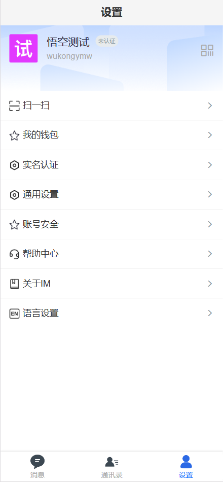 给会员代售的一套程序,二开了红包、实名认证、钱包等小功能,首页界面仿的是腾讯云im,原版没有改这些功能
