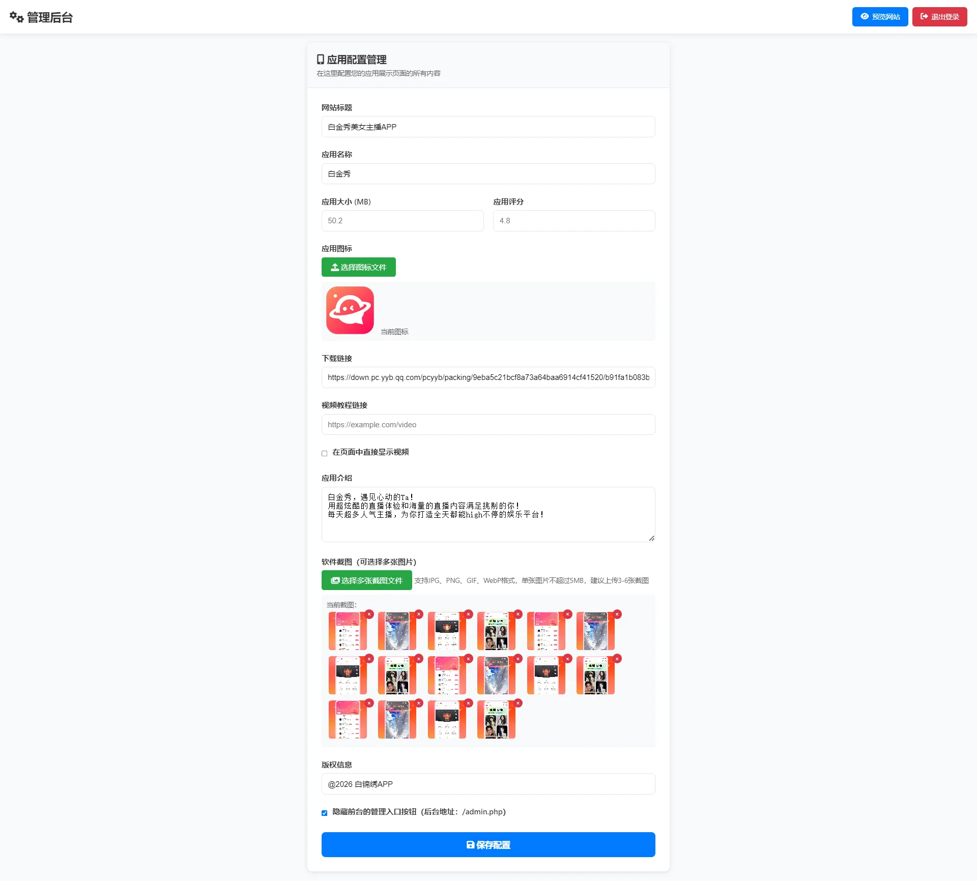 后台访问地址为域名/admin.php,后台账号信息需自行配置。