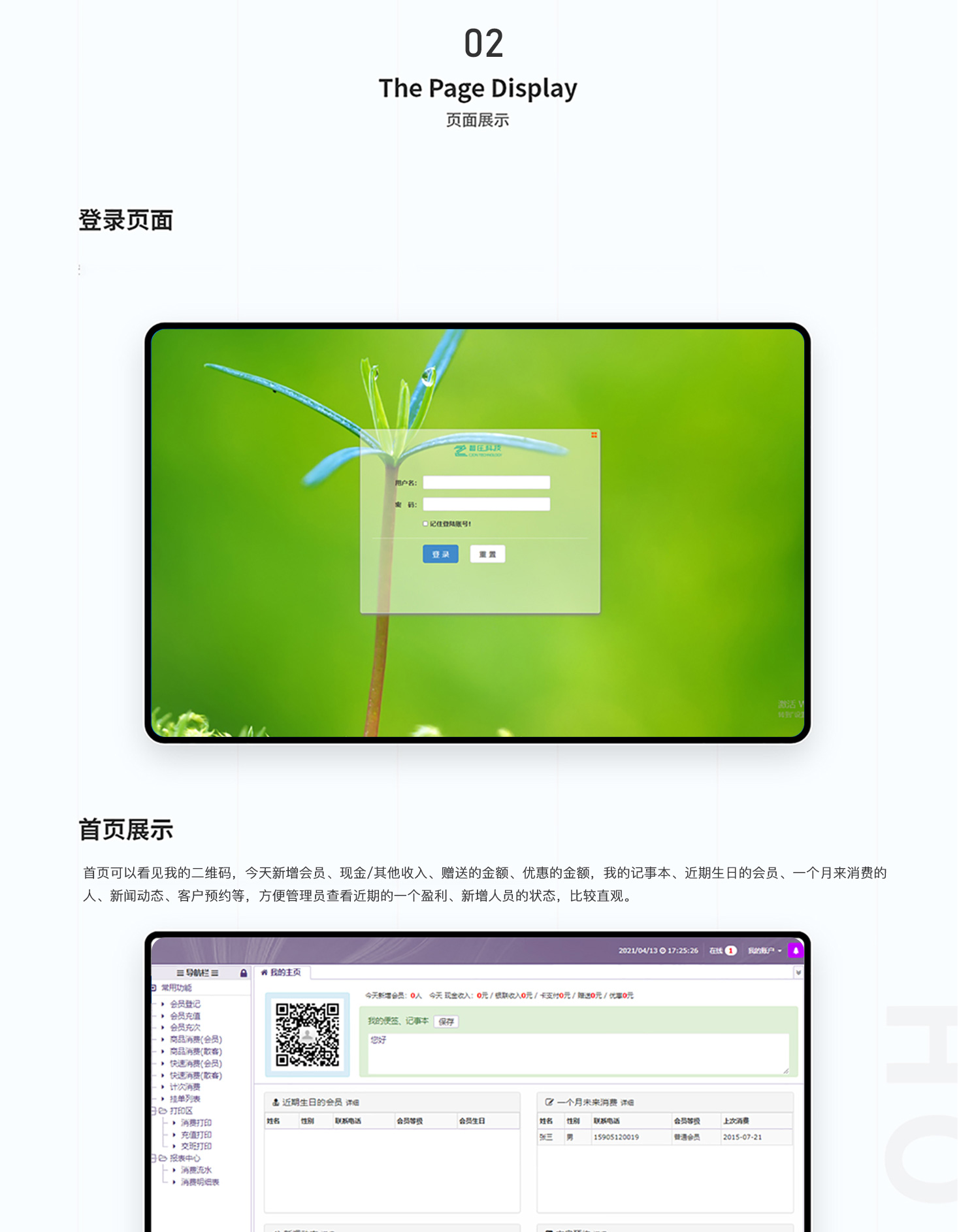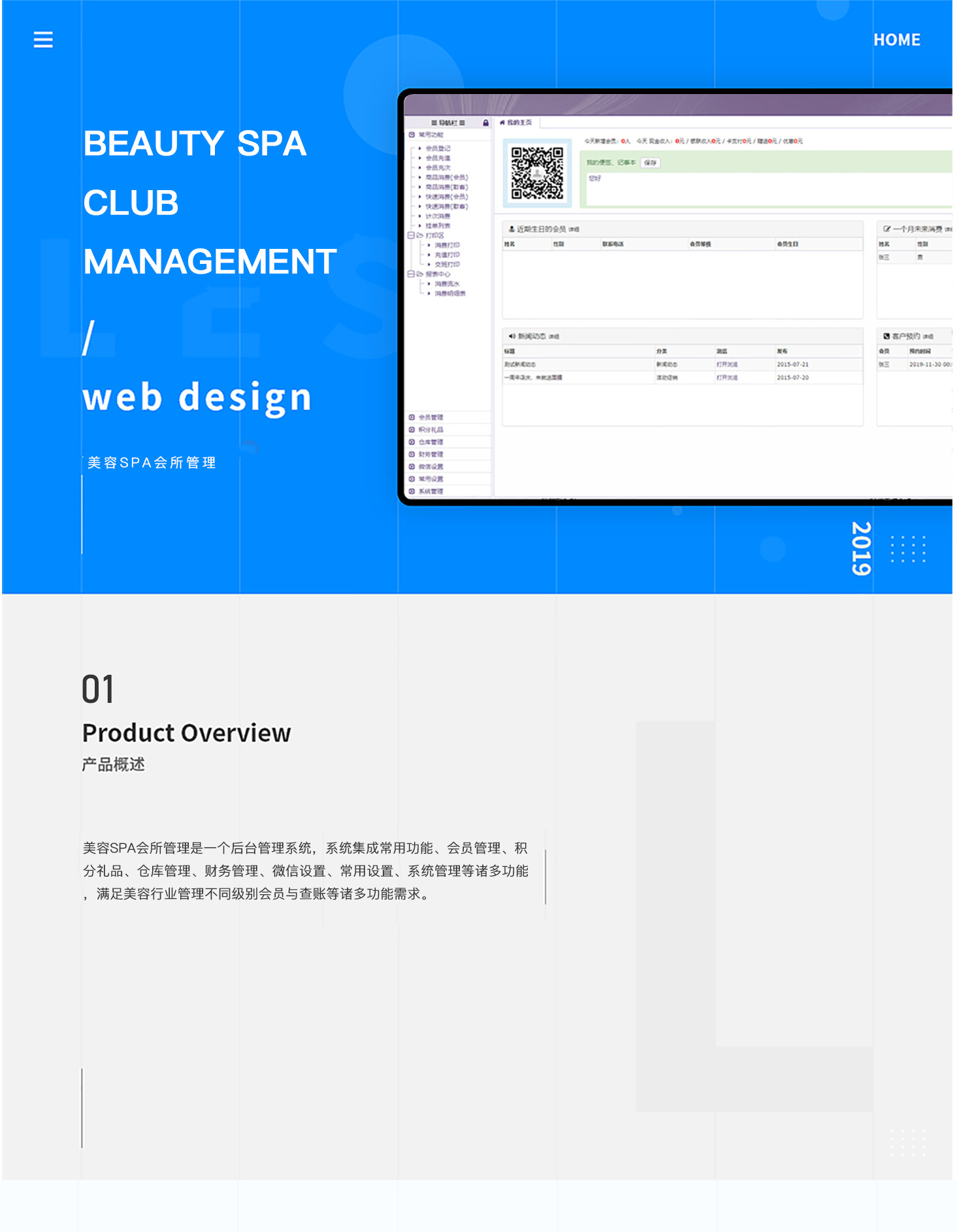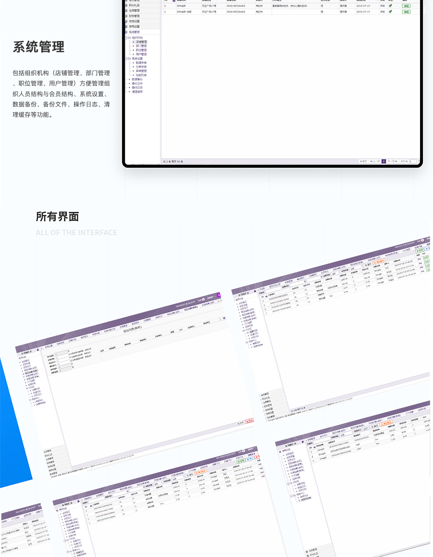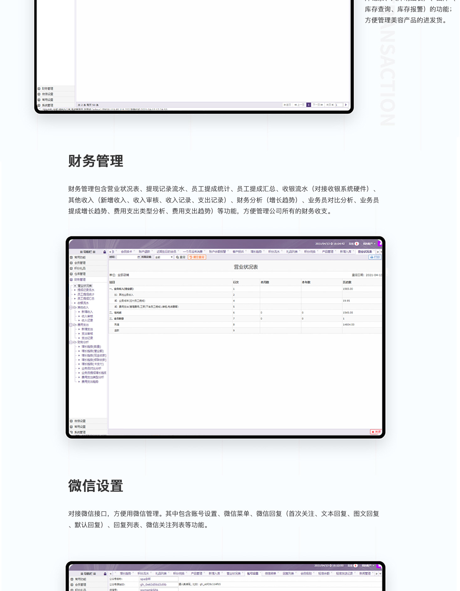 - 美容SPA会员管理系统,集vip会员、消费、收银、仓储管理系统带微信客户端为一体的系统,新手也可以简易入门,一般适用美容院,美发店,时装店,美甲加盟店,奢侈品店这些来搭建店内消费管理系统!