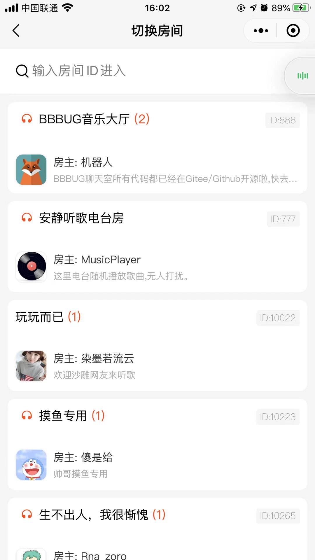 支持在线听歌的聊天室,并且支持多房间和创建私人房间,支持房间加密和切换房间模式的KTV小程序