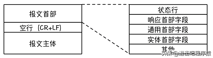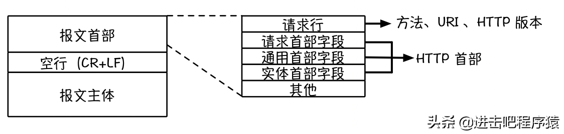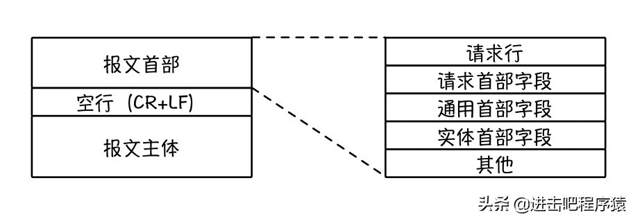 HTTP 协议交互的信息被称为 HTTP 报文。报文大致可以分为报文首部和报文主体两块,两者由空行(CR+LF)来划分,报文主体可以不要。