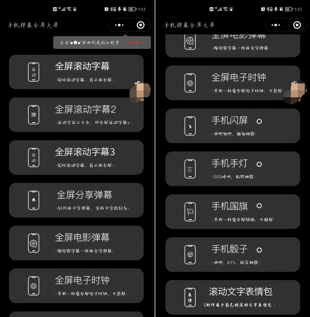 经常在演唱会、火车站等场所,看到别人的手机、平板上,全屏字幕滚动,看起来非常炫酷,只要使用这个小程序就可以制作,还能设置颜色、背景、字号等。