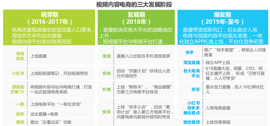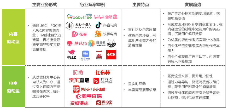 目前处于爆发期,电商驱动型和视频内容驱动型走向竞合