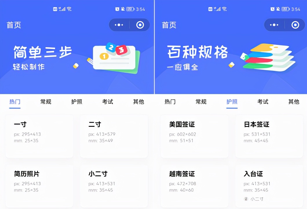 在手机上就可以制作证件照,教师证、结婚照以及各种考证、简历需要的证件照,都可以在这里进行制作;