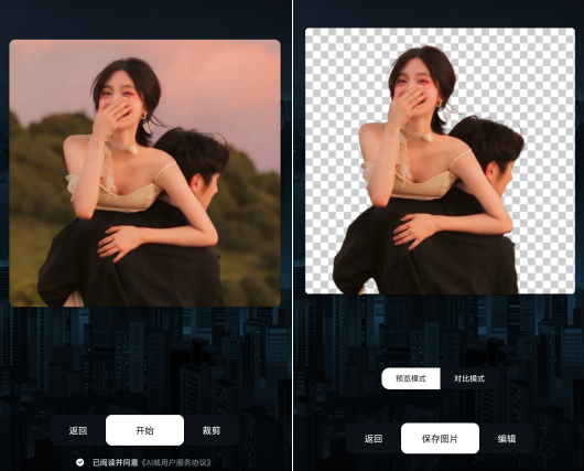 上传图片之后,系统自动将图片主体抠出,如果是人物的话,效果更为明显,发丝都能抠出来。