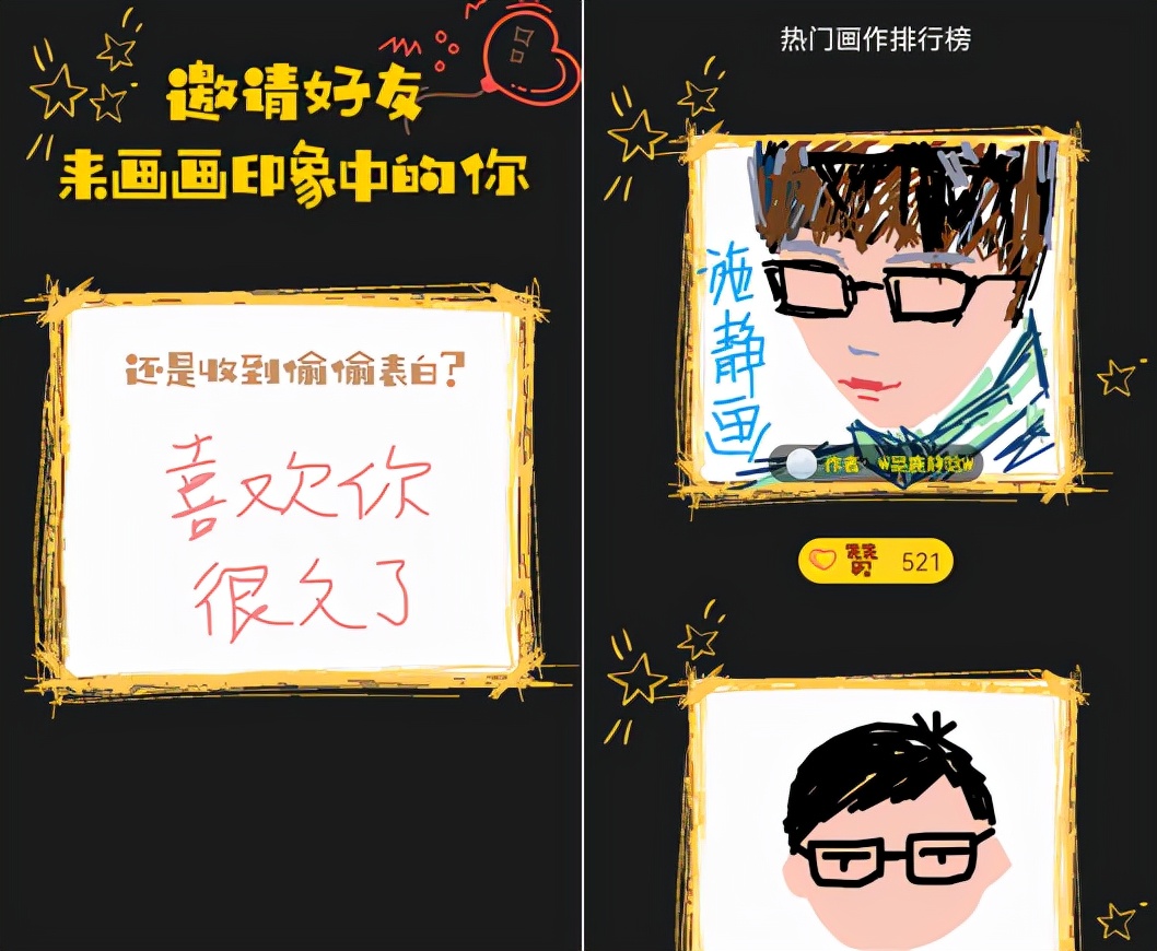 想知道别人印象中的你?可以试试这个小程序,邀请对方来画画,提供模板,画作简单;