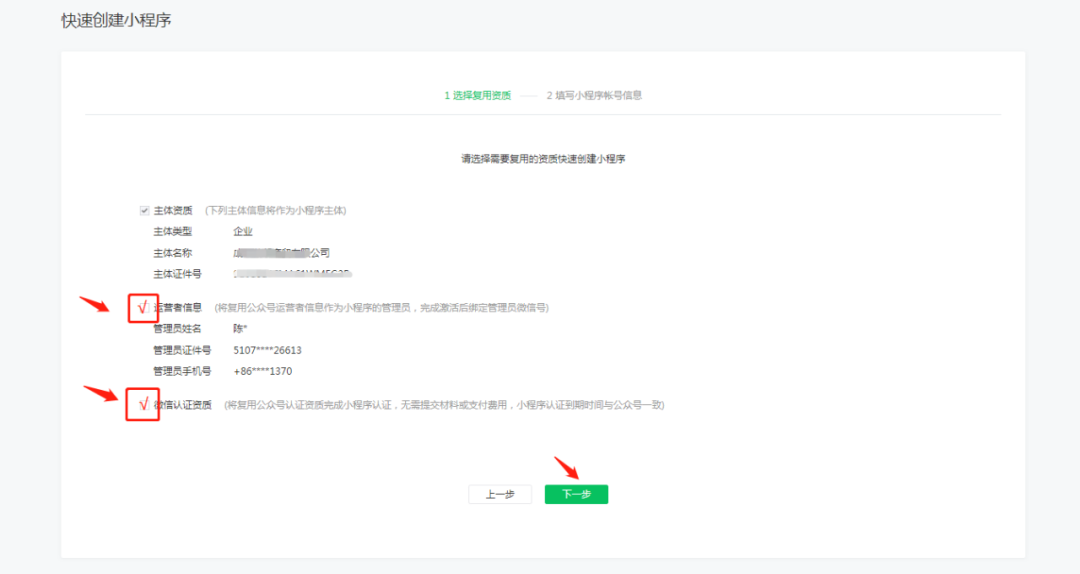 注意。如上图,把框里全√上,然后进行下一步;输入新的邮箱作为小程序的后台登录账号;进入邮箱激活后,账号便注册成功;随后,进入小程序后台,填写完善资料后,小程序账号就成功注册并认证。这样的好处是以后不需要每年再次认证,只需要认证公众号就可以了。