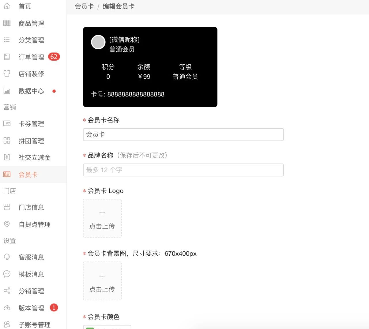 后台设置会员卡