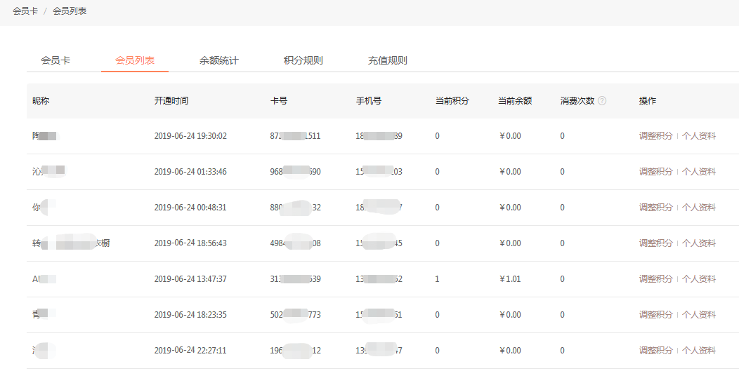 终端会员卡及后台会员信息