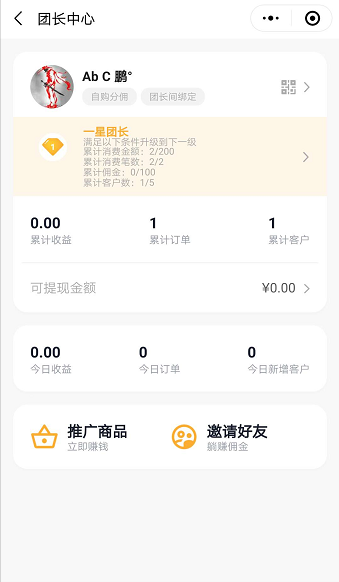 分销/团长中心界面