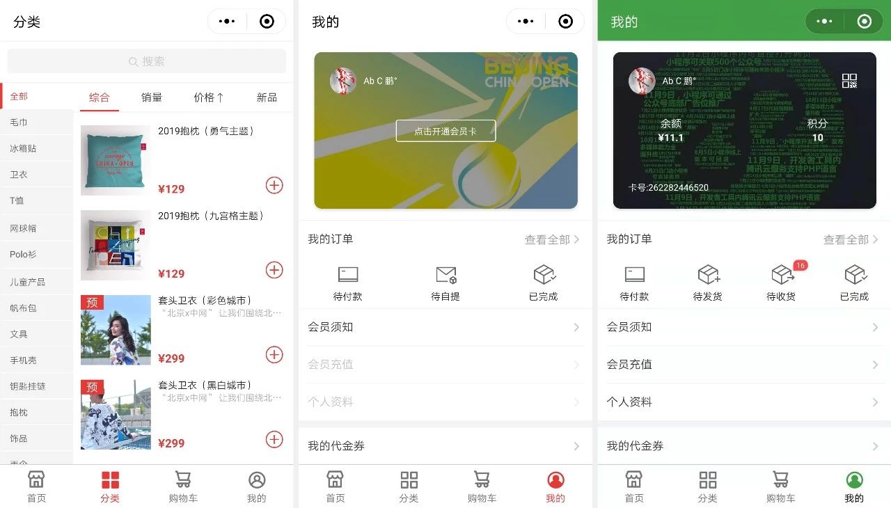 包括会员信息、订单信息、储值入口、优惠信息,以及其他的店铺信息!