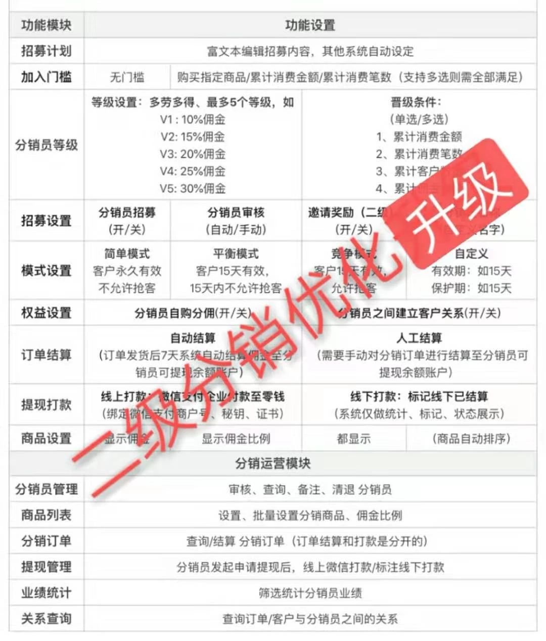 二级分销逻辑!分销商升级(满足条件后,分销商可以提升等级,等级越高,分佣越高。满足多劳多得,激励分销商进行推广分销)