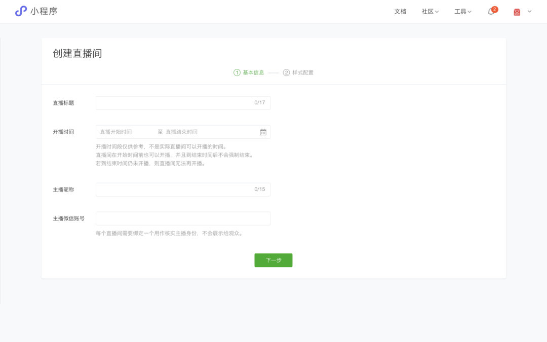 创建直播间,准备开始直播