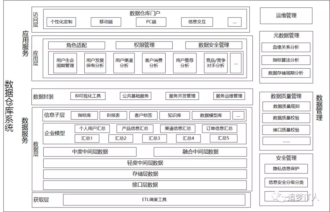 后文是对数据仓库、大数据平台、数据中台的一些总结性的架构材料,也是对自己这些年来的一些汇总和思考吧,看懂了前面的文字,后面的各种架构图也就无需赘述了。