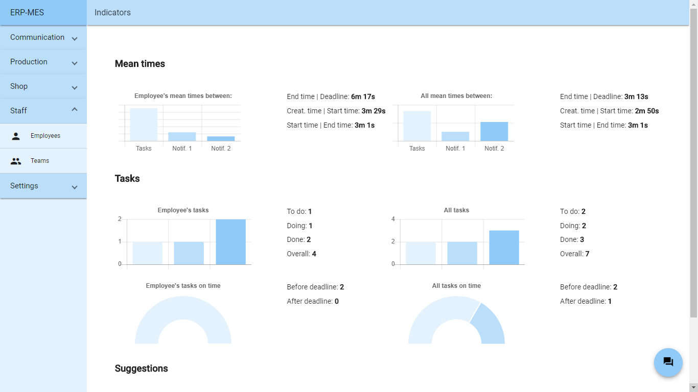 以平均时间、任务数量和建议(针对一名员工和整个团队)表示的进行中工作的评估。