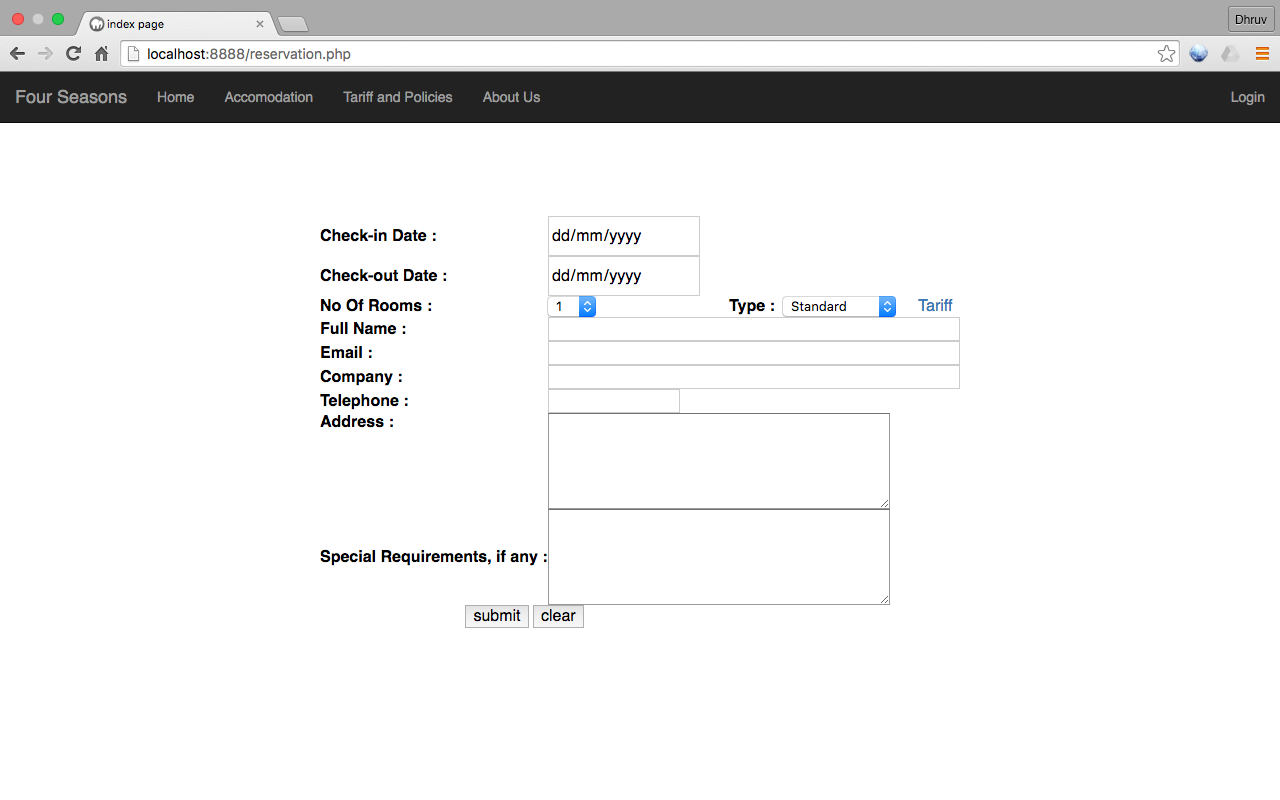 每个客户,如果已经注册,可以使用他在注册时设置的用户名和密码登录系统。 - 存储所做预订的详细信息。每个预订的详细信息都存储在 Reservation 表中。详细信息包括预订的房间类型、预订的房间数量、入住和退房日期。