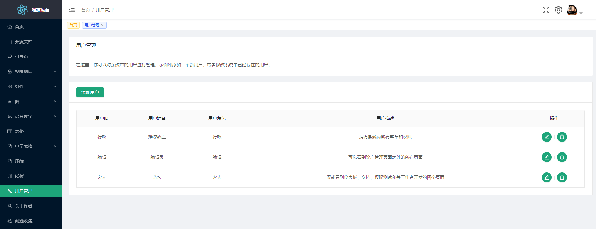 react–antd–admin–template 是一个基于 React 和 Ant Design 的后台管理系统模板。它内置了用户登录/登出,动态路由,权限校验,用户管理等典型的业务模型,可以帮助你快速搭建企业级中后台产品原型,是你接私活的不二之选。
