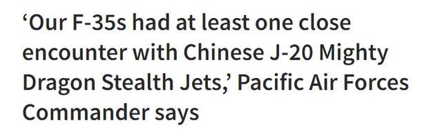 按照美国太平洋空军司令部司令肯尼斯·威尔斯巴赫的说法,美军的F-35隐形战斗机近日已在东海与中国歼-20隐形战斗机近距离“相遇”。